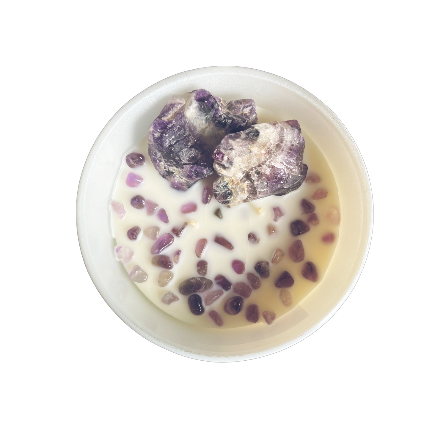 I'm absolutely enamored with this candle! The scent is divine, wrapping me in its soothing embrace every time I light it. Moreover, the inclusion of the crystal within the wax seems to add an extra dimension, infusing the space with an aura of calm and tranquility. It's become an essential part of my relaxation routine, and I couldn't recommend it more for anyone seeking both a delightful fragrance and a touch of peaceful ambiance.